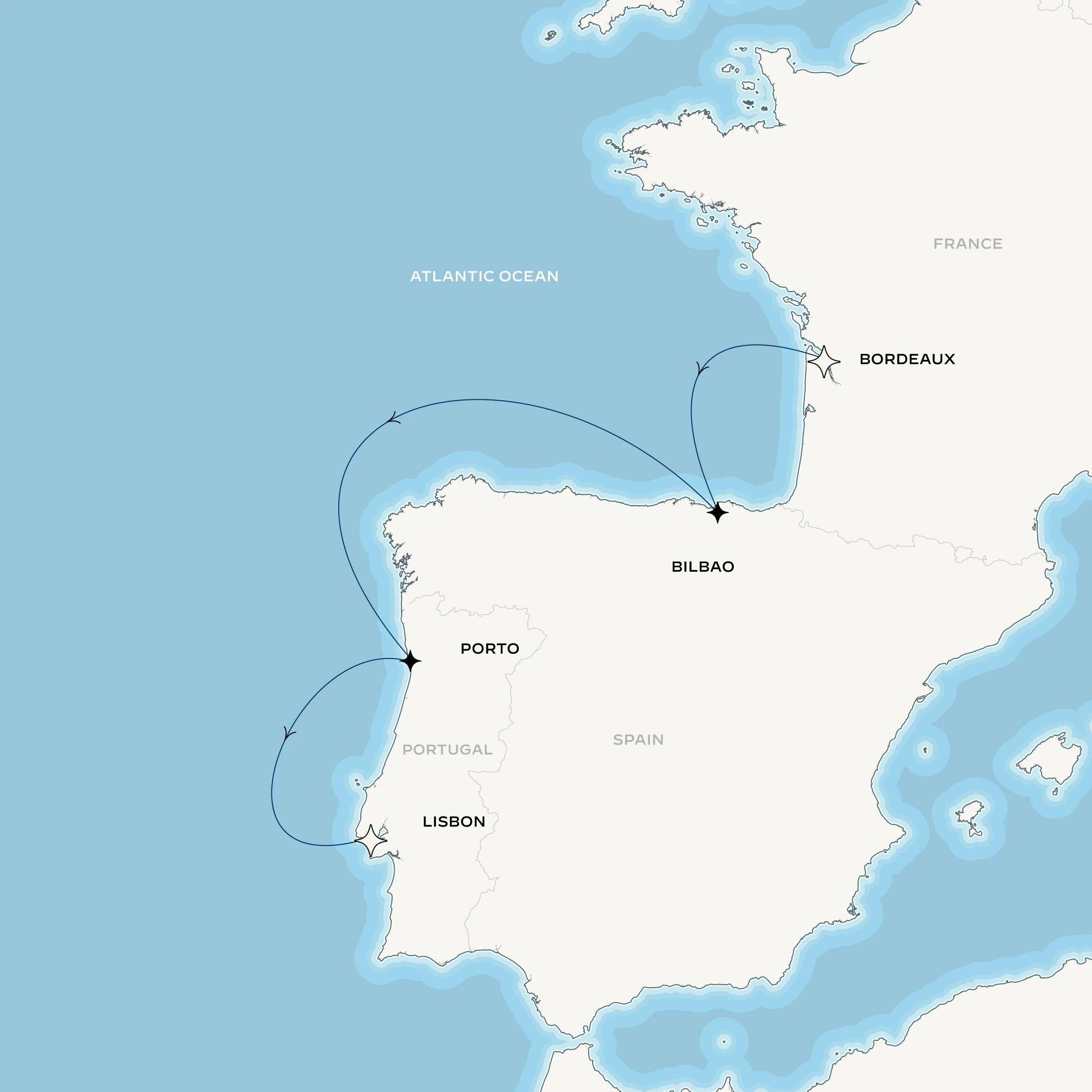 Embark on a late summer voyage along the Atlantic edge when vineyards swell with sun-ripened grapes, heavy with the promise of an extraordinary vintage. Médoc, Pomerol, and Saint-Émilion enchant in Bordeaux, but it is a dinner at one of the region’s most celebrated châteaux that will introduce you to the rarest vintages. The journey turns southward to Bilbao, the culinary capital of the Basque Country and a beacon of contemporary culture, bold architecture, and innovative gastronomy. Further along the coast, the voyage embraces Portugal's most captivating duo: Porto enchants with its UNESCO-listed riverside beauty and the Douro Valley where port wine cellars hold fast to tradition, while Lisbon’s dynamic food scene seamlessly blends timeless pastéis de nata with avant-garde tasting menus in hidden taverns and Michelin-starred havens.